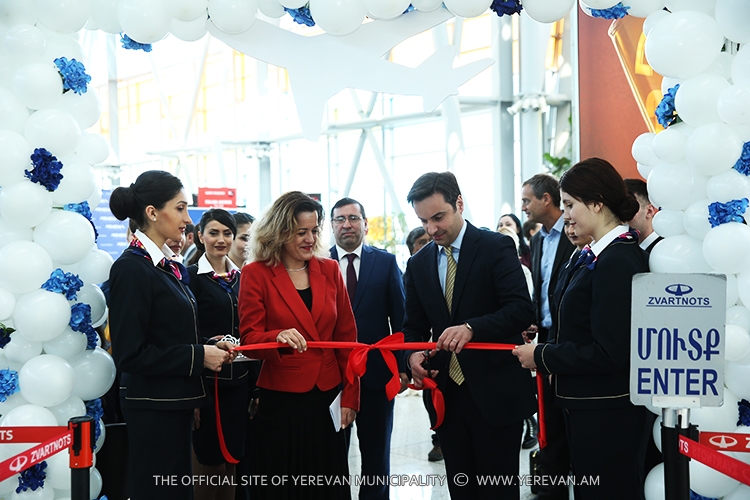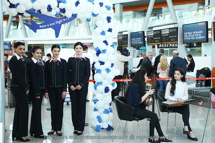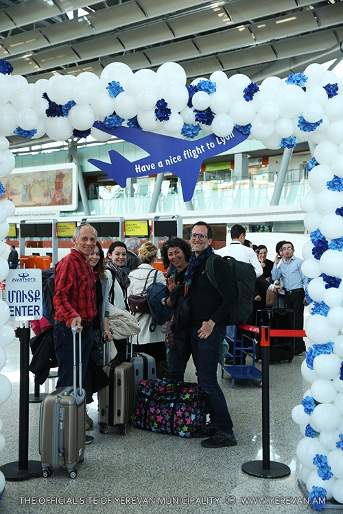 The first passengers were solemnly met at the airport by the head of Yerevan Municipality Department of Foreign Relations David Gevorgyan and the first Advisor to the Ambassador of France to Armenia Claire le Flecher.