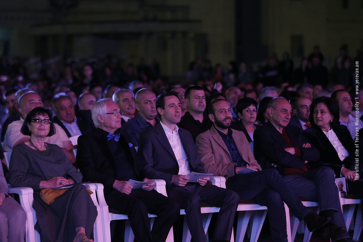 For the contribution to strengthening the cooperation between Yerevan and Stepanakert established by the decision oh Yerevan Mayor, the Mayor of Stepanakert Suren Grigorayn was awarded with “Argishti I” memorial medal. On the occasion of 80th birthday anniversary, for significant contribution to the cultural life of Yerevan and fruitful activity “Argishti I” medal was also awarded to composer Tigran Mansuryan. Maestro’s music from films was performed during the concert in Rebirth square. The State Symphonic Orchestra of Armenia conducted by Sergey Smbatyan performed Maestro’s works in a new instrumental arrangement and version. The series of concerts became an occasion to write down the notes of Maestro’s soundtracks in a new way and publish them.