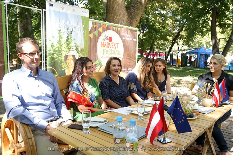 The importance of harvest festival, the achievements of recent years, the peculiarities of this year’s festival and the expected events were presented during the press conference held in Children’s Park. The speakers were Yerevan Mayor’s Assistant coordinating the sphere of tourism Maria Baraghamyan, the founder of the festival, the president of “Green path” NGO Nune Sarukhanyan, the leader of Organic Agriculture Support Initiative (OASI) program of Austrian Development Agency David Mukenhuber and the UNO Fund for Gender Equality Portfolio Manager Mrs Rana El- Houjeiri.
