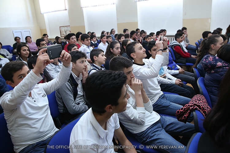 During the event the pupils of the school performed the songs of the famous singer in Armenian and in French, presented episodes from his life.