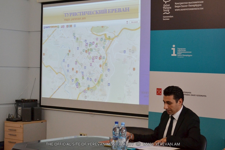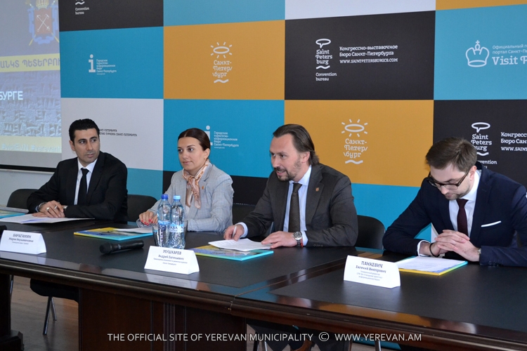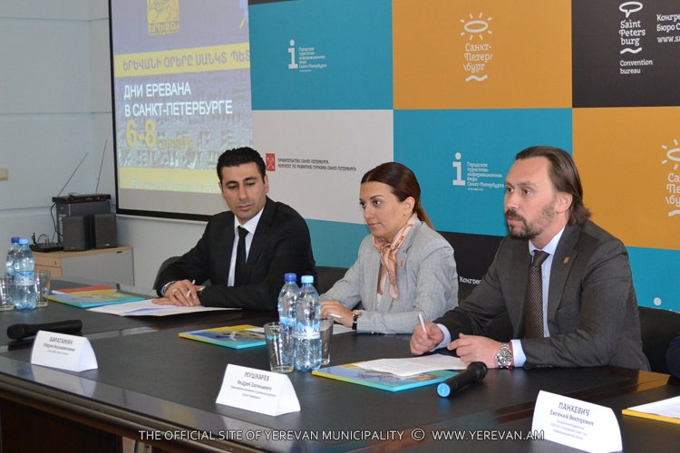 «Երևանի օրերը Սանկտ Պետերբուրգում» ծրագրի շրջանակում տեղի է ունեցել Երևան և Սանկտ Պետերբուրգ քաղաքների զբոսաշրջության զարգացմանը նվիրված հանդիպում-քննարկում: Քննարկմանը մասնակցել են Երևանի քաղաքապետի օգնական, տուրիզմի ոլորտը համակարգող Մարիա Բարաղամյանը, Երևանի քաղաքապետարանի աշխատակազմի տուրիզմի բաժնի պետ Գևորգ Օրբելյանը և Սանկտ Պետերբուրգի զբոսաշրջության զարգացման կոմիտեի նախագահ Անդրեյ Մուշկարյովը: Կլոր սեղան ձևաչափով անցկացված քննարկմանը, որին հրավիրված էին Սանկտ Պետերբուրգի թանգարանների, զբոսաշրջային ընկերությունների, ռուսական տպագիր և էլեկտրոնային զբոսաշրջային պարբերականների ներկայացուցիչներ, մասնակցել են նաև երևանյան «Թրավելոն», «Արմենիա Թրավել +Մ» և «Յունայթեդ Թրավել» զբոսաշրջային ընկերությունների ներկայացուցիչները: