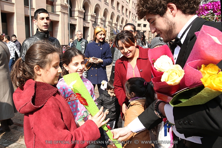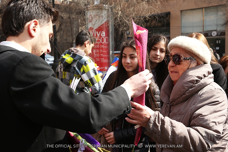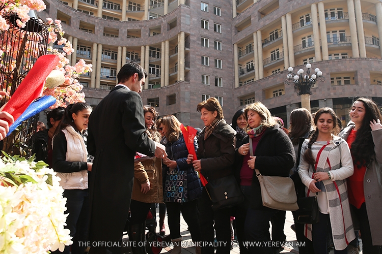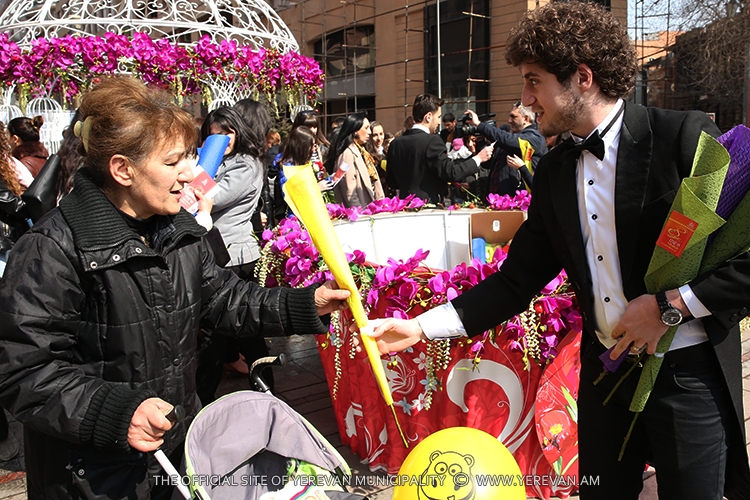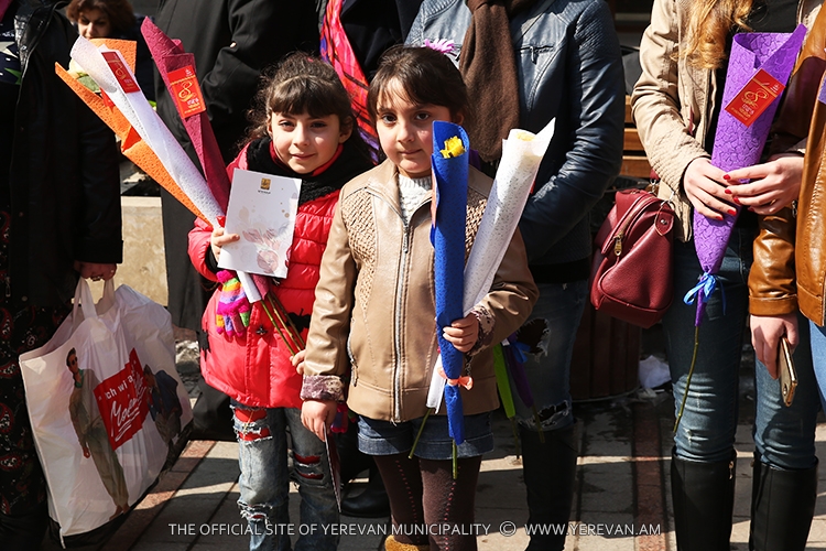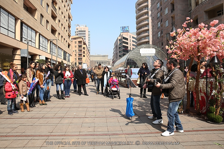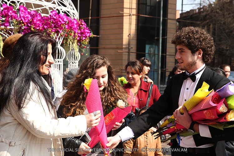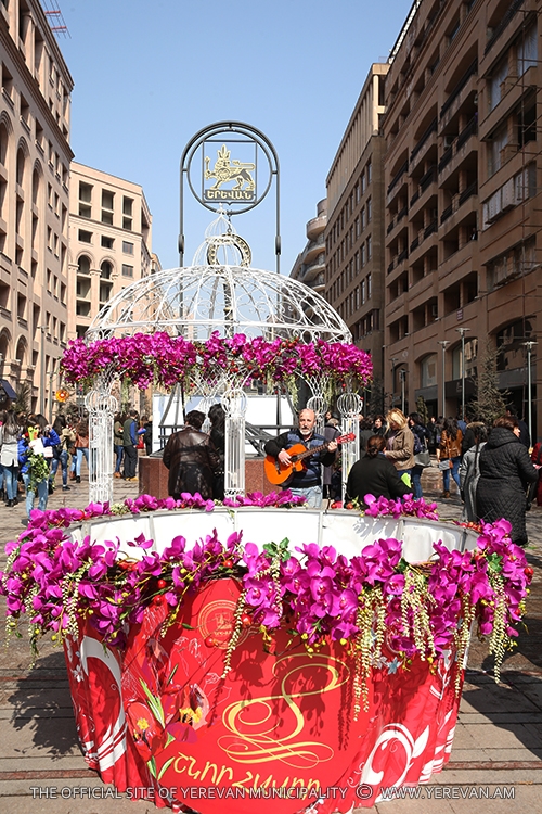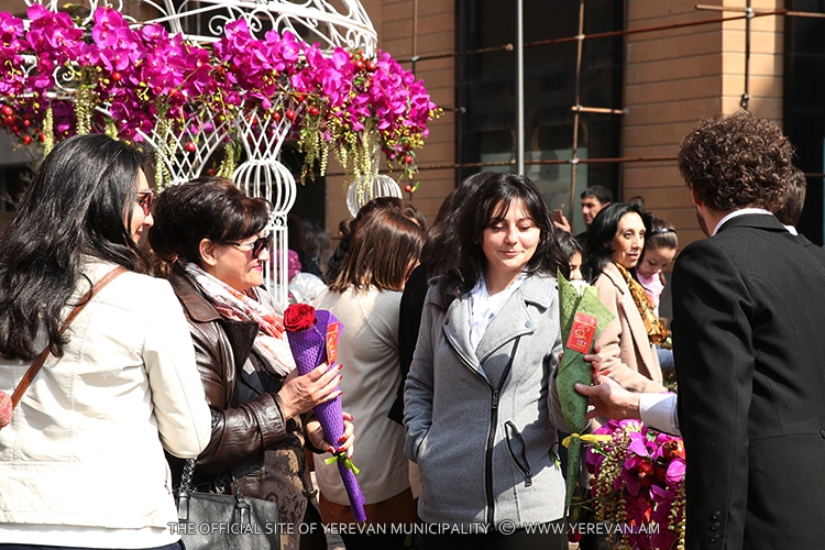 Երևանում թևածող տոնական մթնոլորտն ավելի ջերմ են դարձրել Հյուսիսային պողոտայում ձևավորված ծաղկային տաղավարները: Ծաղիկներից ու տոնական բացիկներից զատ, կանանց ու աղջիկներին երգեր են ձոնել նաև հեղինակ-կատարողները: Անցորդ կանանցից ոմանք նաև ձայնակցել են կատարողներին` էլ ավելի տոնական դարձնելով մթնոլորտը: Շնորհավորելով ու բարեմաղթանքներ հղելով միմյանց` կանայք նաև շնորհակալություն են հայտնել Երևանի քաղաքապետարանին` հերթական գեղեցիկ անակնկալի և կանանց հանդեպ դրսևորած հատուկ վերաբերմունքի համար: