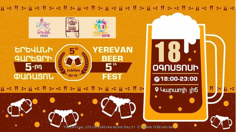Երևանի հիմնադրման 2800-ամյակի առիթով գարեջրի բոլոր սիրահարներին օգոստոսի 18-ին՝ ժամը 18:00-23:00, հրավիրում ենք Կարապի լճի հարակից տարածք՝ մասնակցելու մեր մայրաքաղաքի ամենասիրված և սպասված Երևանի գարեջրի 5-րդ հոբելյանական փառատոնին: