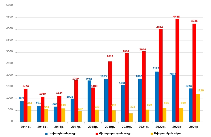 Նախագծման թույլտվությունների, շինարարության թույլտվությունների և ավարտական ակտերի վիճակագրություն
