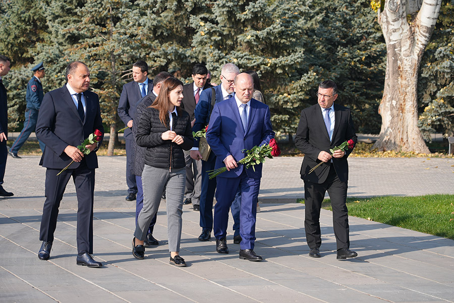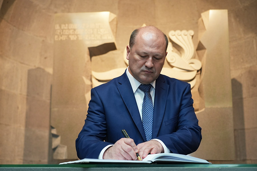 Քաղաքապետ Տիգրան Ավինյանի հրավերով Երևանում գտնվող Դոնի Ռոստովի քաղաքապետ Ալեքսանդր Սկրյաբինն այցելել է Ծիծեռնակաբերդի հուշահամալիր, ծաղկեպսակ դրել և ծաղիկներ խոնարհել անմար կրակի մոտ: